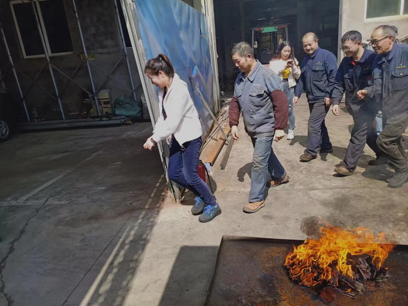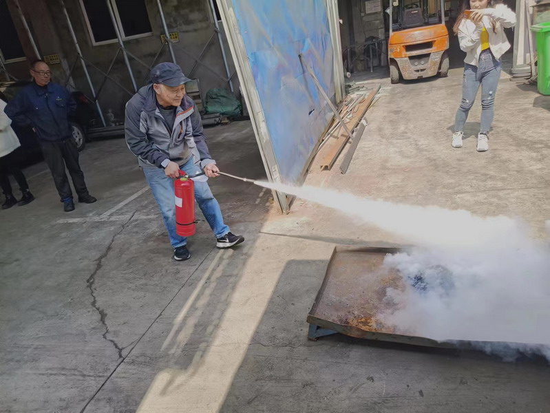 培訓中,總經理沈揚就消防安全管理,火災的形成發(fā)展及滅火對策,如何報警、火災初期撲救、人員安全疏散及逃生自救等常識進行講解,并對滅火器的使用、維護、保養(yǎng)及注意事項進行現場培訓。培訓中,員工們認真聽講,隨后,車間施主任與安全員小范組織參會人員進行火災疏散和滅火演練,有效提升了大家的火災防患能力,組織火災初期撲救能力和疏散逃生自救能力。